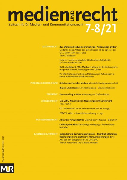 Die UrhG-Novelle 2021: Neuerungen im Senderecht (S. 336) >>> Details