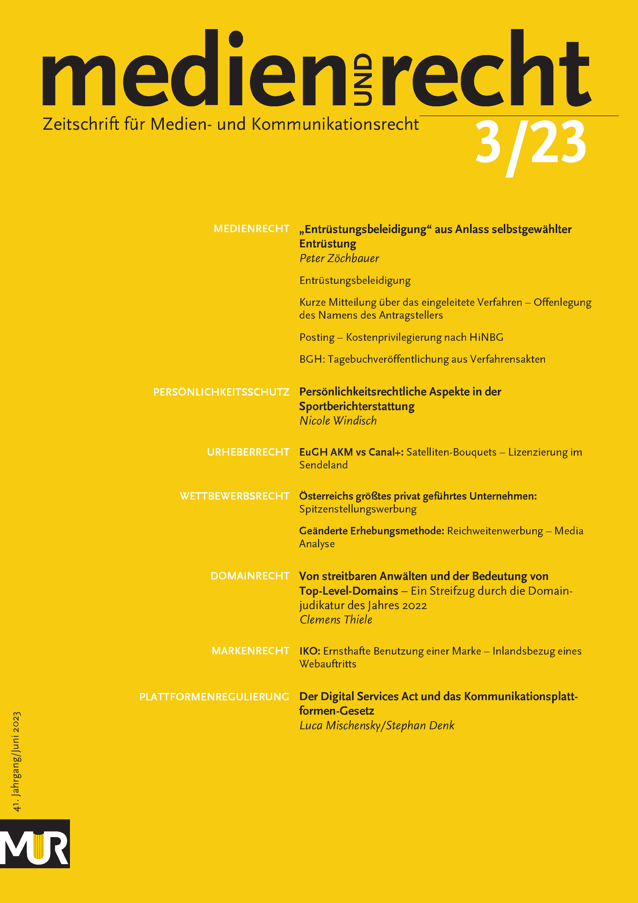 Clemens Thiele Von streitbaren Anwälten und der Bedeutung von Top-Level-Domains – Ein Streifzug durch die Domainjudikatur des Jahres 2022 (S. 119) >>> Details